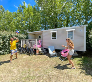 Le camping Le Brandais vous accueille à Brem-Sur-Mer, charmante petite ville de bord de mer en Vendée. À seulement 800m de la plage, 300m du centre-ville, 15 km de la gare et du centre-ville des sables d’Olonne, ce camping proche Brétignolles sur mer saura vous séduire. En bord de mer et à 5 minutes de Brétignolles-sur-Mer, sa situation est idéale. A vous les longues plages de sable à proximité du camping ! En séjournant au Brandais, profitez de différentes gammes de mobil homes équipés pour toute la famille. Ouvert dès l’ouverture du camping et jusqu’en septembre, un grand espace aquatique est à votre disposition pour profiter de moments uniques en famille : une piscine extérieure chauffée, une piscine couverte chauffée, une aire de jeux aqua ludique pour vos enfants, et des toboggans et pentagliss pour toujours plus de fun ! Pour vous restaurer : bar, plats à emporter et épicerie de dépannage. Pour votre confort : WiFi (gratuit au bar 30min/jour et payante sur les locatifs), laverie, location de vélos et location de barbecues possible. Idéal non ? Pour vos enfants : des structures gonflables pour le plus grand bonheur des petits. En juillet et août, le club enfants est ouvert aux 4 à 12 ans. Pour les plus grands, des animations sportives (tournois sportifs et cours de remise en forme en tout genre) vous sont proposées pendant l’été. Le soir, endiablez-vous lors des soirées organisées par le camping.