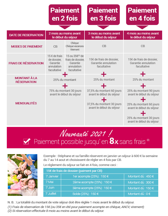 Nos facilités de paiement pour vos vacances