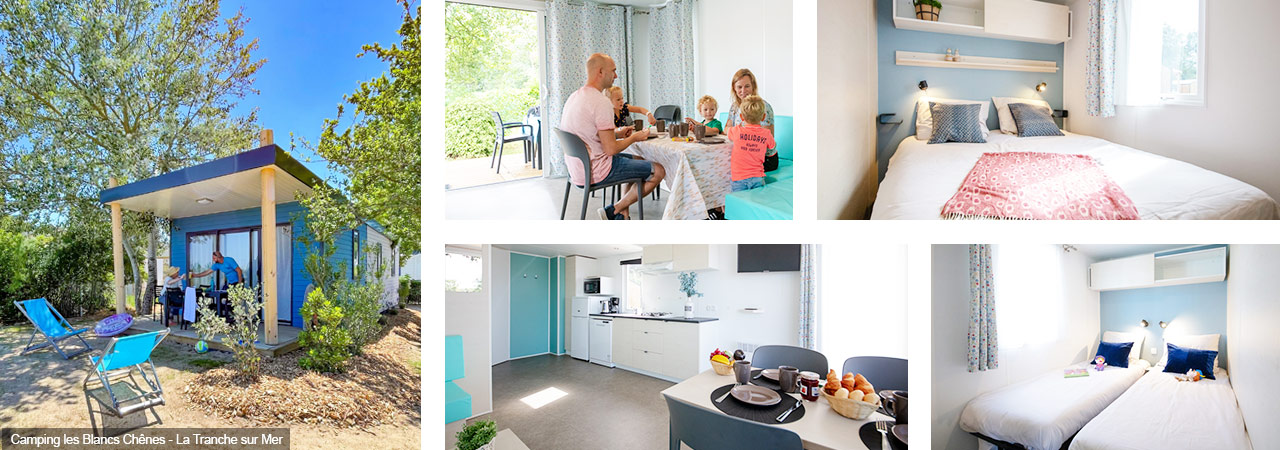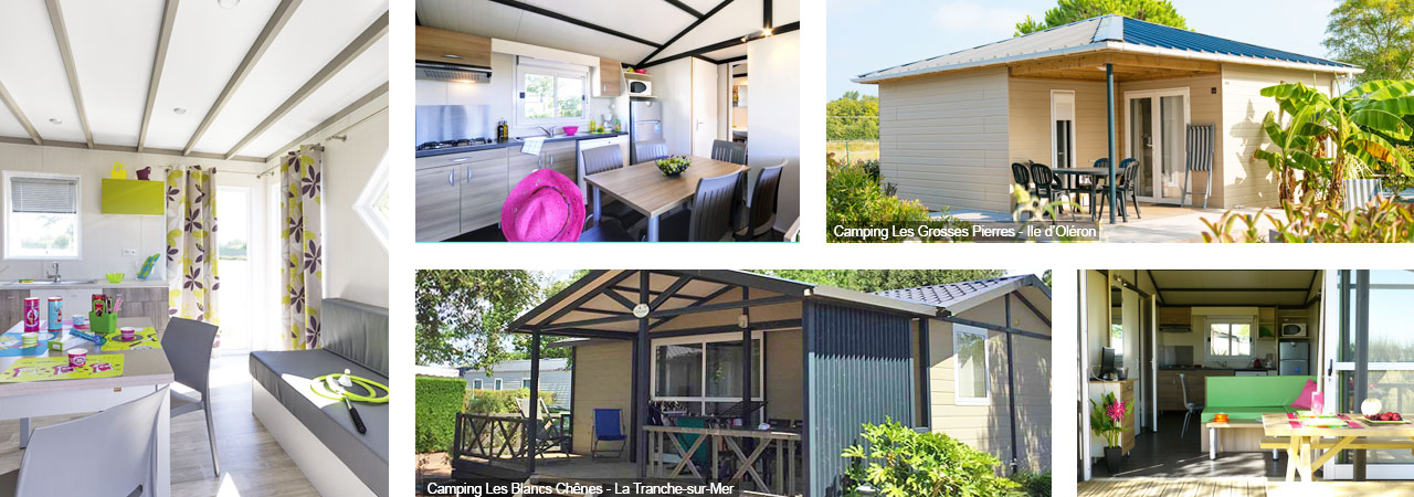 Les Chalets Top Presta sont disponibles uniquement sur les campings Les Blancs Chênes (La Tranche-sur-Mer) et Les Grosses Pierres (Île d'Oléron).